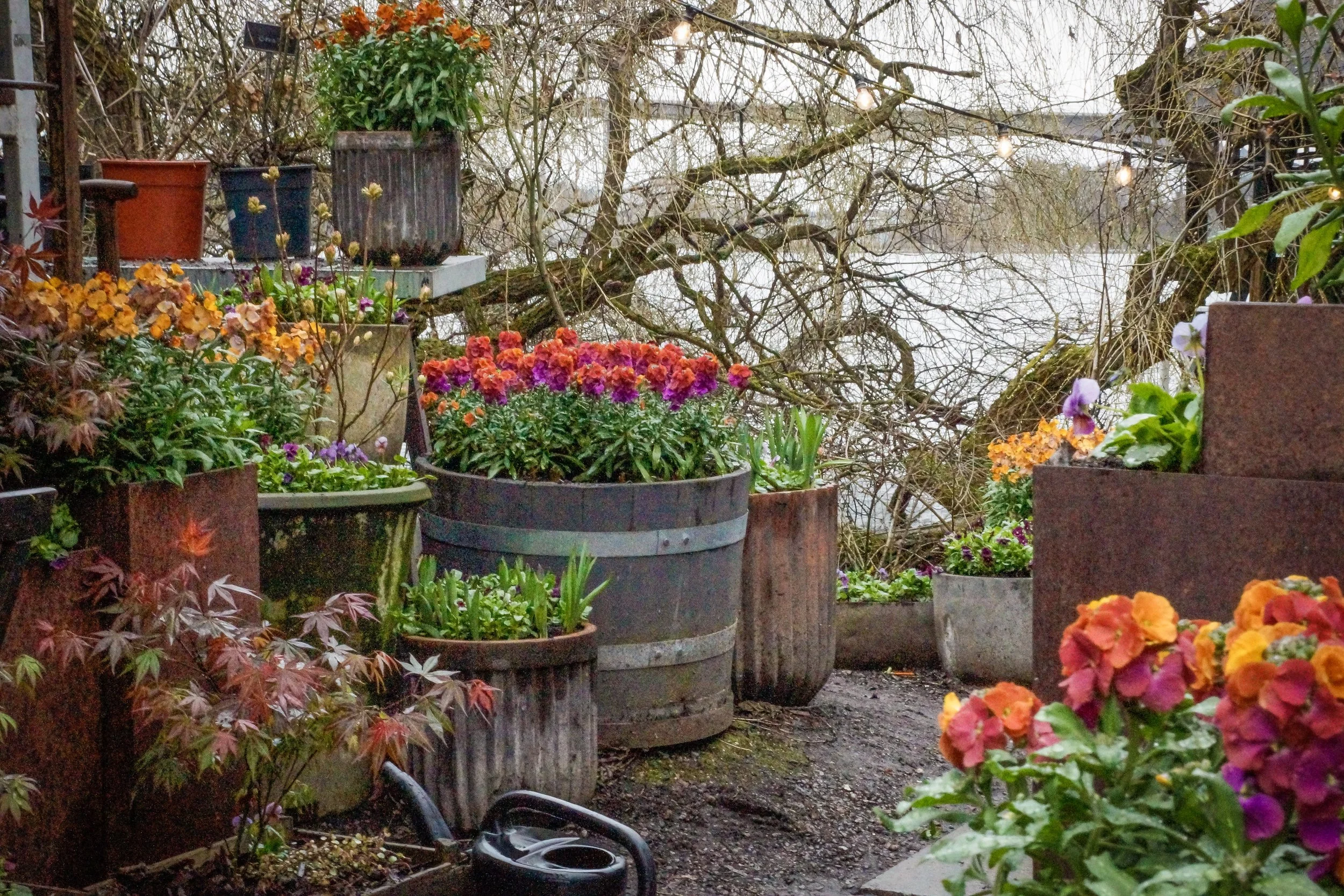 Det gamla strandcaféet med serveringsbrygga, paviljongen och kaféområdet på land, de tre pråmarna och gathörnet uppe vid The Green Queen har gjort att vi har skapat flera spännande trädgårdsrum. I de olika områdena, var och en med sin specifika karaktär och färgsättning, hoppas vi att alla ska kunna hitta sin favoritplats!